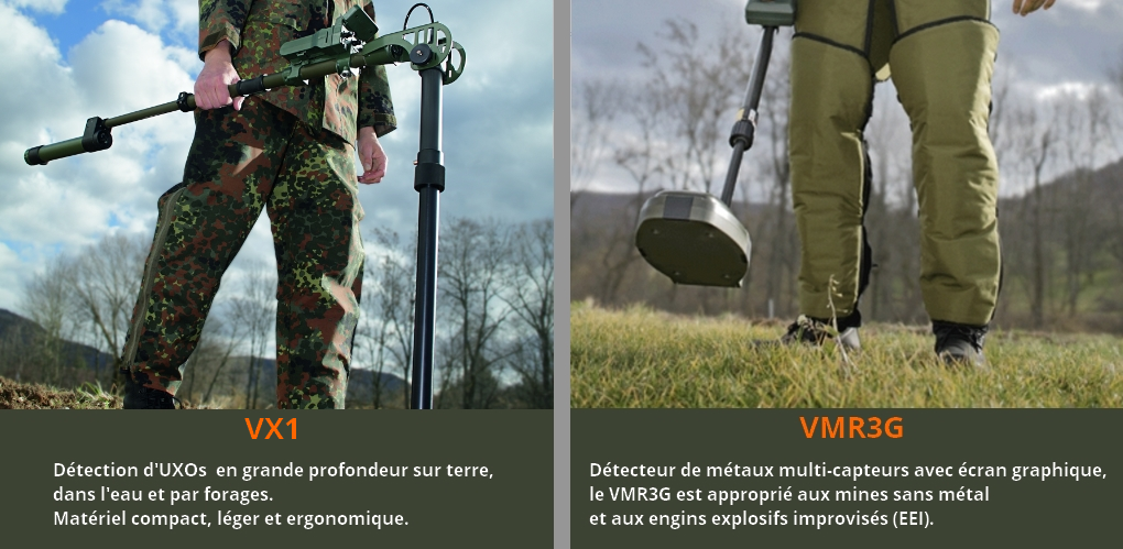 Détection d'UXOs en grande profondeur sur terre, dans l'eau et par forages. Matériel compact, léger et ergonomique