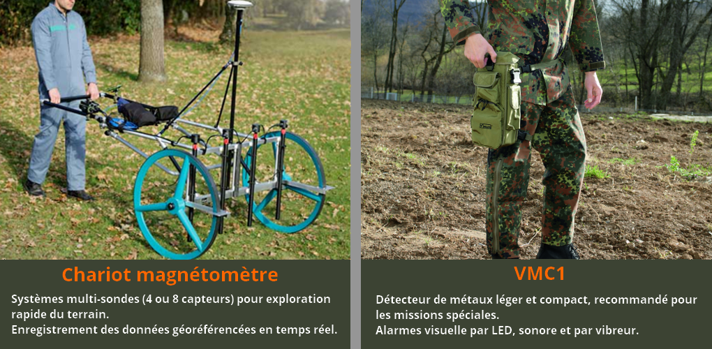 Systèmes multi-sondes (4 ou 8 capteurs) pour exploration rapide du terrain. Enregistrement des données géoréférencées en temps réel
